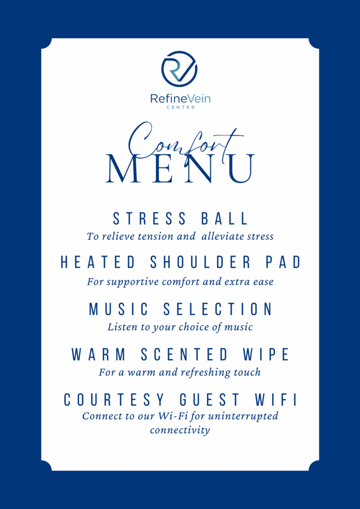 After living with pain for some time, you may have forgotten what true comfort feels like. While we help you on your way to physical comfort, we offer the calming and quiet atmosphere of our office. We specifically designed Refine Vein Center to promote peace and tranquility, and we know you will feel its healing effects the moment you enter.
